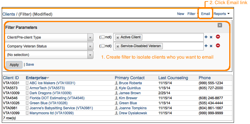 - Use the email addresses of the primary contact for each company (as found in the primary contact that is associated with the client record)