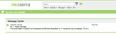 As noted in the screenshot above, you can "Dismiss" the Message Center notification or your can "Review" the delivery details. A review of the deliveries will show all successful and failed deliveries.