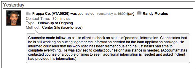 The counselor picture will not be shown next to milestones, capital funding or awards. If multiple counselors participate in one counseling session then the generic multi-counselor icon will be shown.