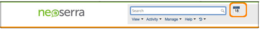 You can view your calendar by clicking the calendar icon found at the top of the Neoserra interface next to the search window: