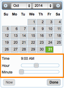 - Start/End - Select the start and end dates of your meeting and set the time using the sliders: