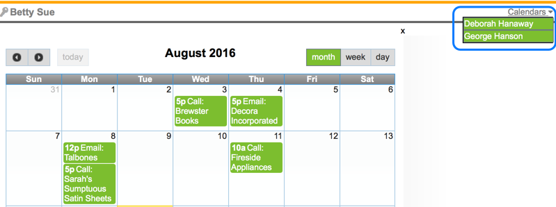 By default, you will see your calendar and your appointments when you click on the calendar icon at the top of the screen. However, you may also be able to view the calendar of your colleagues, assuming they allow you to view their calendar as configured under their personal preferences. If you have permissions to view the calendar of your colleagues then you will see the drop down to their calendar in the right hand corner of the calendar interface: