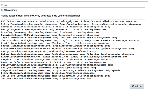 From here you can cut and paste the email addresses and bring them into your external email application.