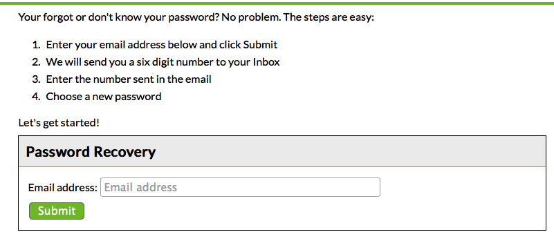When they click on the "Forgot Password?" link they will be presented with an interface to start the password recovery process: