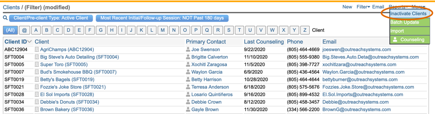 - With these clients in the view window, select More|Inactivate Clients.