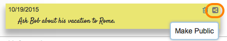 A private note, that is visible just to you, is always shown in yellow. A note that is visible to others, is shown in salmon. Keep in mind that you are the only one who can delete those sticky notes created by you. So while your note may be visible to others, it needs to be removed by you, if it is no longer applicable.