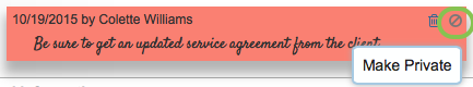 Sometimes you may want to add a note to a client record that is not directly related to the client or to a specific counseling session. For example, you may want to post a reminder for yourself to ask a client about a recent vacation that they took, or you may want to remind yourself to get an updated agreement from the client. The electronic version of a sticky note in Neoserra is only visible to you or to your colleagues (assuming you share your sticky note.)