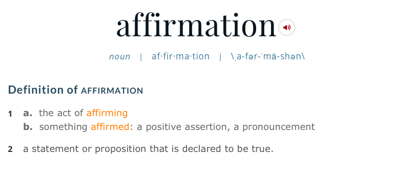 Before we get ahead of ourselves, let's take a look at the definition of the word affirmation:
