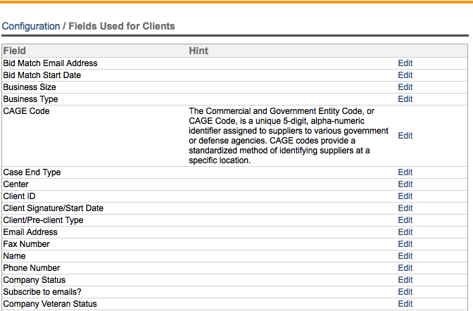 Click on the form where you want to add the help and then click on the specific field to be edited. As noted above, some help has been pre-entered into the system but this can be overwritten or disabled: