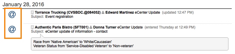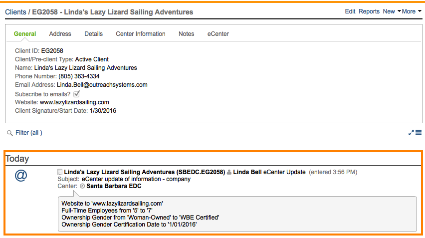 Furthermore, if the client signed up for an event, then that event registration will appear in their data stream. The eCenter Update record will also include the name of the event that they signed up for.