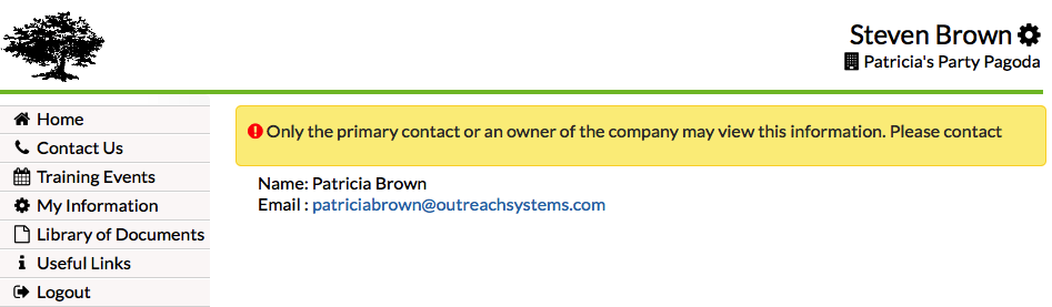 Assuming the person logging into eCenter Direct is either the primary point of contact for the client and/or they are the business owner, then they can go to the "My Information" link on eCenter. From here, they can see all contacts already associated with their client record in Neoserra, and they can also add additional contacts: