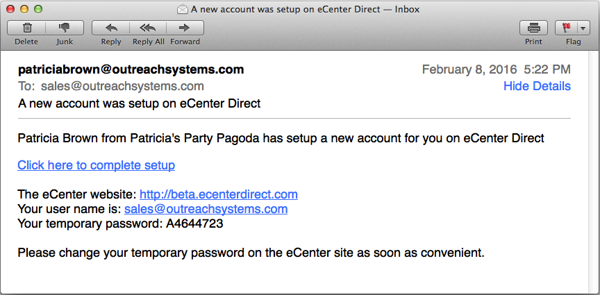 Upon clicking "Save," an email will be sent to the new contact: