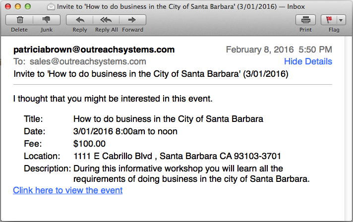 The same interface also allows the client to add the event to their calendar.