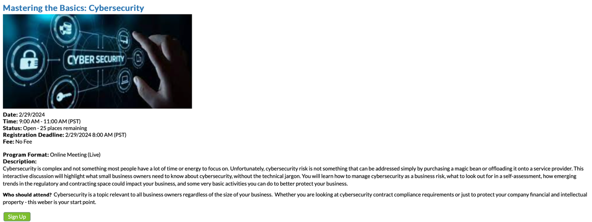 - Use abstract format for training event listing page: The abstract view includes the thumbtag image along with the title, the fee and the primary topic, as shown above. Unchecking this box, displays the entire event description on eCenter Direct:
