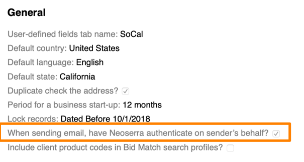 When I send email from Neoserra how can I have Neoserra authenticate on my behalf?