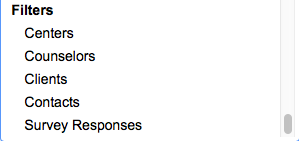 All filter parameters included in this FAQ pertain to the contact record. However, Neoserra also supports many specially calculated filter parameters on the client record.