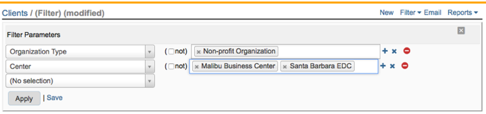 | Is Client? | This filter parameter lets you search for all contacts that either are or are not associated with a client/pre-client record. Contacts that are not associated with a client/pre-client record may have been training attendees who never completed the full client application form. |