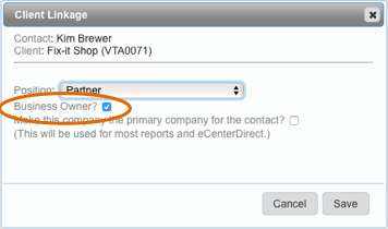| Serial Entrepreneur? | This filter parameter lets you search for all contacts who are owners of more than one company, as determined by the owner check box on the Client Linkage page: