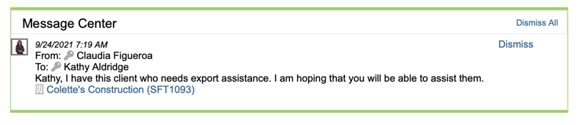 The user with whom you are collaborating will always be notified via the Neoserra Message Center with a link back to the client record: