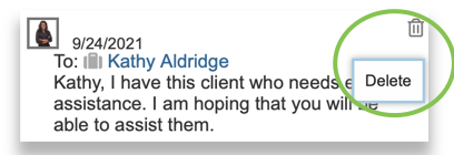 And again, even dismissing the notification from the Active Collaboration screen will only dismiss it from your Active Collaboration page, it will remain on your collaborator's Active Collaboration page and it will remain on the client record, until you or your collaborator delete it from the client record: