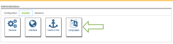 To allow for multi-ligual support on eCenter Direct you will need to change the interface language under the Administration|Configuration|Languages menu option: