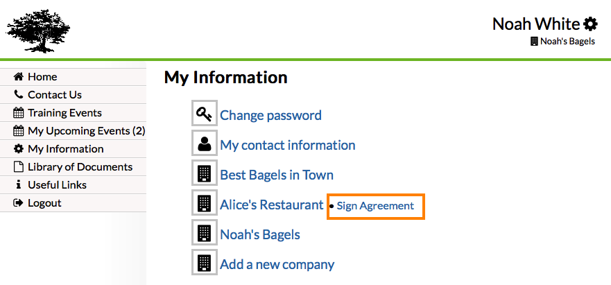 The reminder is not intrusive in any way, but gently reminds your clients to sign the agreement for each company for which they are either the primary point of contact or the business owner: