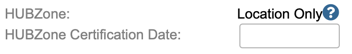 The HUBZone field will automativally reflect "Location" if the client is located in a HUBZone but no certification date has been entered; and it will reflect "No" if the client is not located in a HUBZone. The field will show "Undefined" if the physical address is missing or invalid.