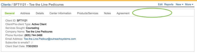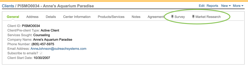 Keep in mind, that if a client has not responded to the pinned survey, then the tab will not appear on their client record: