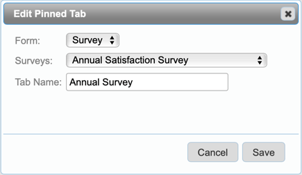 - You can pin multiple surveys, if you want. Keep in mind that the client record has limited space. The more tabs you pin, the more likely the form will have to wrap in order to show all the tabs. However, to pin a second survey, simply repeat the steps above and then decide if you want to reorder the tabs: