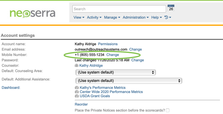 It is absolutely essential that users do not share the same user account! Each person with access to Neoserra should have their own user account, with their own associated mobile phone number.