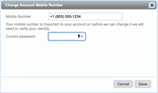 The mobile phone number is necessary for Two-Factor Authentication (2FA). Administrators can enter the mobile phone number on the user account record. However, users can also update and maintain their own mobile phone numbers on their Personal Preferences page.