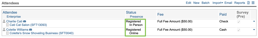 And your Neoserra attendee list will reflect the desired participation of each attendee: