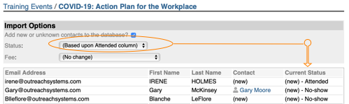 Now that Neoserra knows who attended and who did not, in the "Status" drop down you can choose to import the data based upon the "Attended" setting: