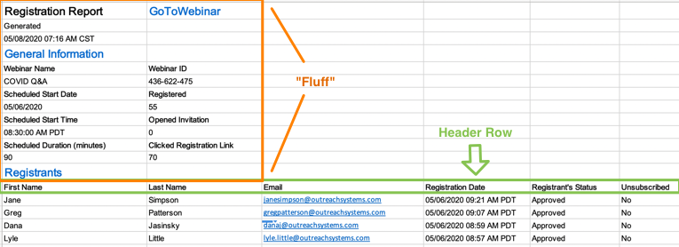Many third party applications may generate registration/attendee files that include a lot of "fluff" at the top of the file that is non-essential to Neoserra: