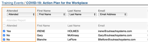 If your import file includes an "Attended" column to keep track of who truly attended vs. who was a no-show, then the first check box column will be marked for those contacts who had a "Yes" in the Attended column and they will unchecked if the Attended column showed a "No".