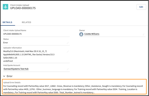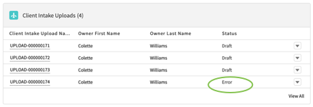 As noted above, COMNAVS requires five minutes to process your file and check for errors. After you have uploaded the file, wait 5 minutes and then click on the "Accounts" link at the top of the screen. Next, select "All Accounts" and from here find the hub or spoke for which you just exported. Click on your hub/spoke and then click on "Related". Scroll down to see your Client Intake Uploads: