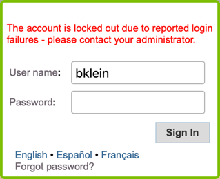 Neoserra will provide a list of all user accounts that have been locked out. If a user forgets their password then the best course of action is to click the "Forgot Password" link on the login page. Users that do not click this link and instead try to guess their password, should know that they will be locked out after their fifth successive incorrect attempt:
