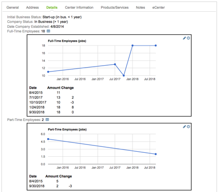 This line item, along with the Jobs Retained line item and the line item titled: "Change in Sales - Compared to Prior Year Reporting" are all dependent upon the jobs and sales tracking tables incorporated into Neoserra effective October 1, 2018. For this reason, these line items will not yield accurate results for any periods prior to October 1, 2018. You can see the growth data points by clicking on the chart icon on the client record: