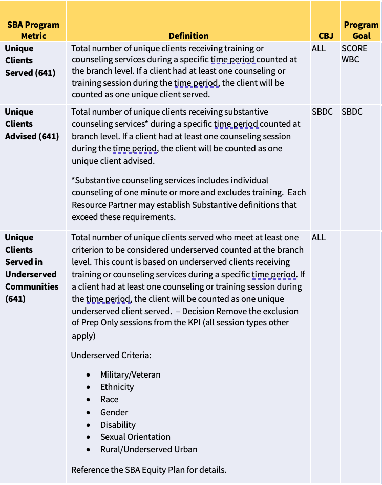 These last few line items are slightly different for SBDCs and WBCs based upon the definitions provided by SBA: