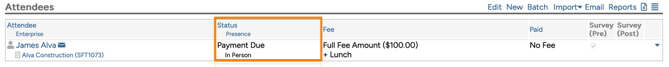 If the event has a fee associated with it, then the client will be initially registered with a status of "Payment Due" as indicated at the top of their registration page: