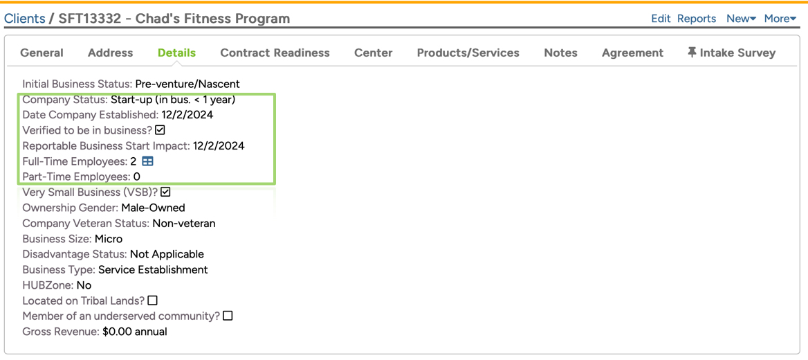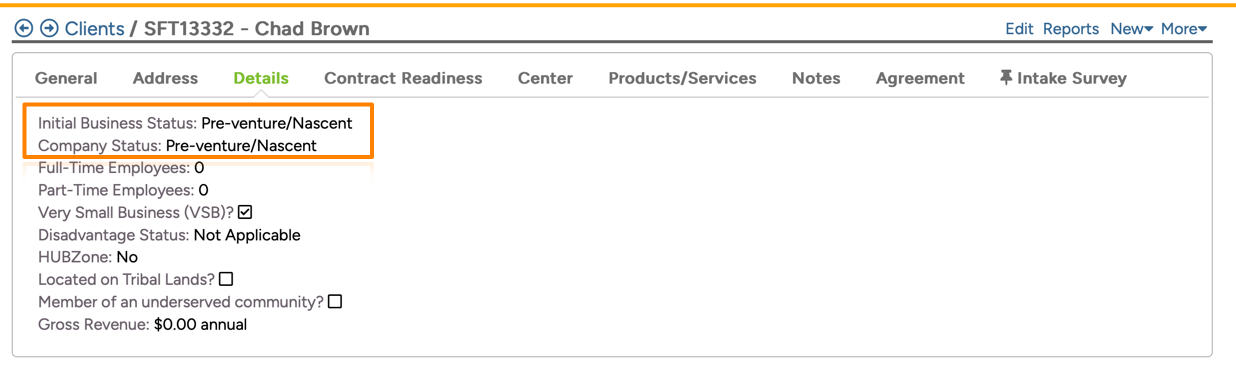 You will log all your counseling sessions under this pre-venture client record. When the client starts their business, you will want to: