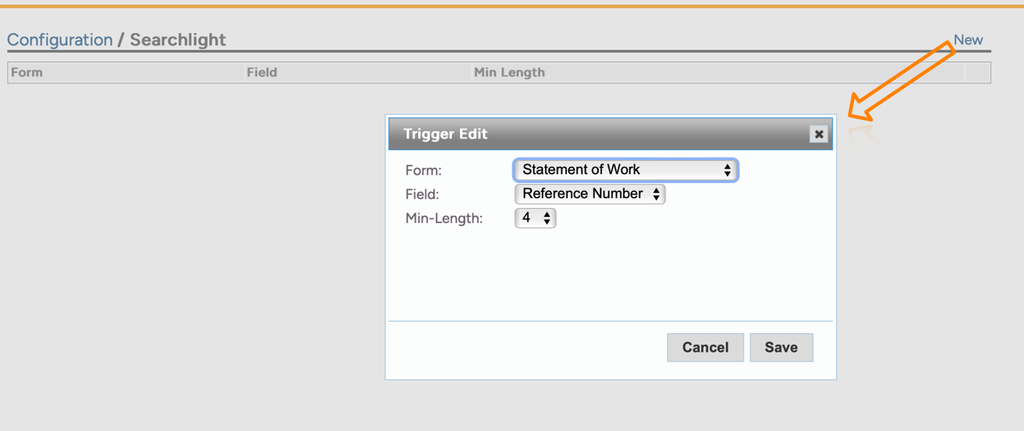 In the first field, select the name of your newly created custom form. In the next field select the name of the field that you want to apply the trigger to, and lastly select the number of characters Neoserra should check for there to be a duplicate.