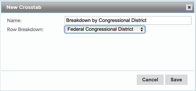 You can provide a name to your crosstab and select one of the following breakdown options: