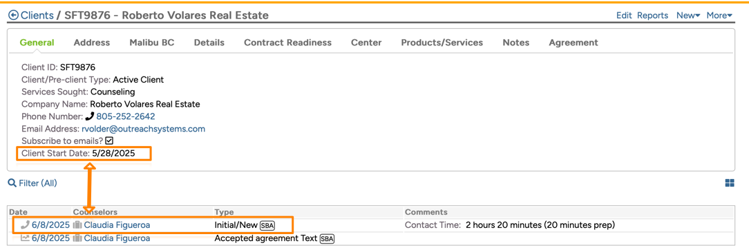 For purposes of this calculation the date of the first initial counseling session in the reporting period is the leading parameter, ignoring all prior initial sessions that fall outside of the reporting period. Reportable Business Start Impact date that precedes the first initial session is not taken into consideration.