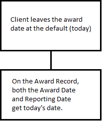 - The client leaves the award date at the default (today). In Neoserra, the resulting award record gets today's date for both the Reporting Date and the Award Date fields.