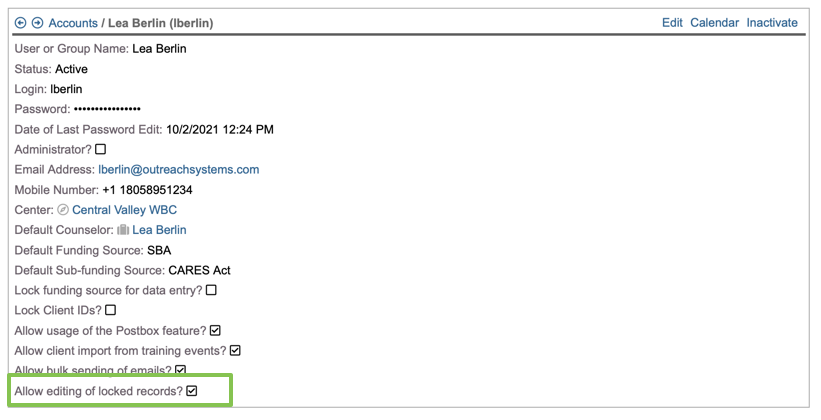 Note: Record locking only affects activity records. It does not lock the client record. As discussed at the bottom of this FAQ, there may be additional funding related locks that could prevent the user from editing the client record, but those are not controlled with this options.