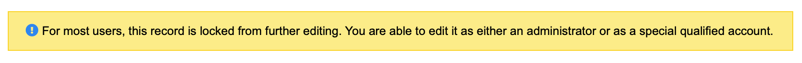 Users with overwrite permissions will know that they are editing a record that is technically locked because the following banner will appear at the top of the record: