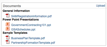 Documents posted to eCenter, from training event records, are displayed wherever the event is found (assuming the eCenter visitor has the appropriate permissions to view the document.) For example, below you will see the documents available to all users associated with the "How to do business in the City of Santa Barbara" event: