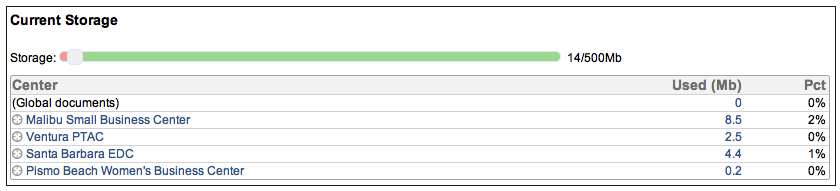 Of course, you can also purchase more storage allocation. By default, every Neoserra database is provided with 1 GB of attached document storage capacity. However, you may purchase 5 GB, 10GB, 50 GB, 100 GB, 250 GB, 500 GB or a terabyte of storage. Please contact OutreachSystems for pricing.