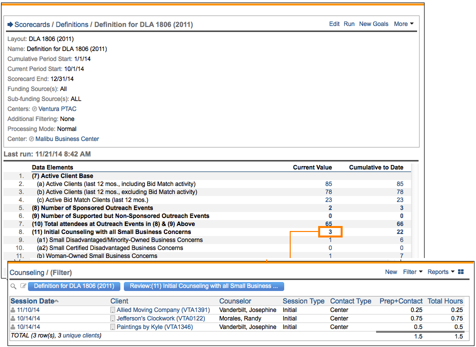 If you edit any of the records that contribute to a scorecard while it is open, you can click the Run link again to recalculate your totals so that your edits are reflected in the scorecard output.
